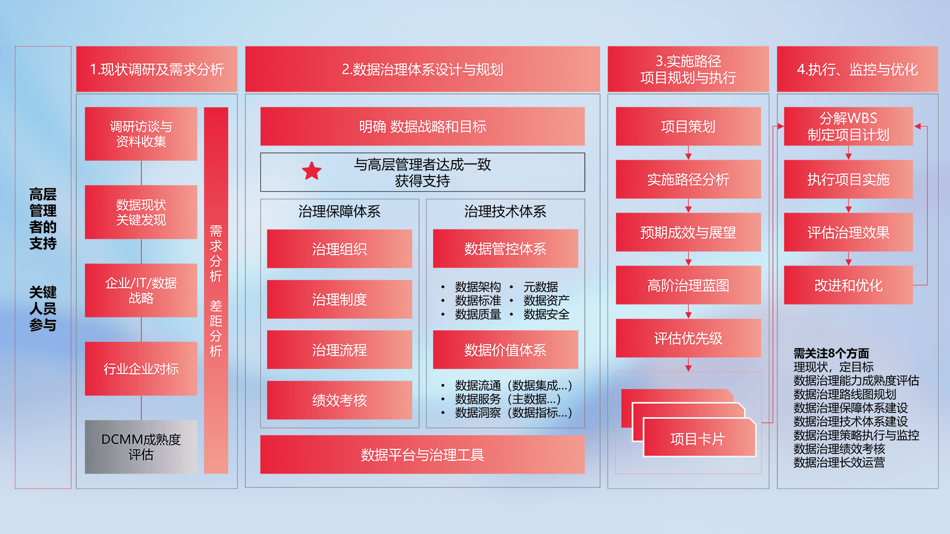 制定并执行统一的数据标准,,,规范数据定义和格式,,消除冗余和不一致性,,,实现跨部门和跨系统的数据一致性,,,为企业提供标准化的数据基础。。。。